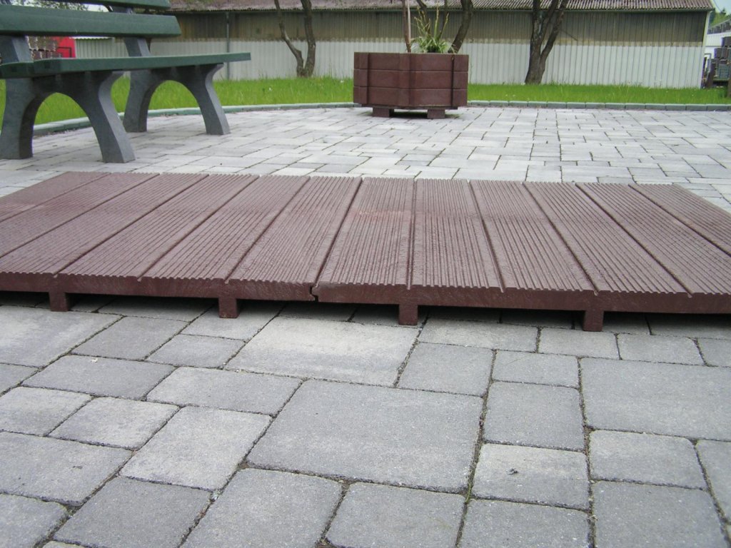 Das Stegbohlenelement aus recyceltem Kunststoff bietet - statt vieler Einzelteile, die miteinander verschraubt werden müssen - ein vorgefertigtes Komplettelement, das sich zügig und einfach verarbeiten lässt. Die Materialeigenschaften des Recycling-Kunststoffes zeigen selbstverständlich auch hier und schaffen so die ideale Lösung für Strand- und Gartenwege. Einfach Meter um Meter zusammenfügen – und bei Bedarf wieder abbauen. Denn dank dem einfachen Steckprinzip ist dieses Stegbohlen-Element auch für den vorübergehenden Einsatz, z.B. für provisorische Wege, ideal geeignet.